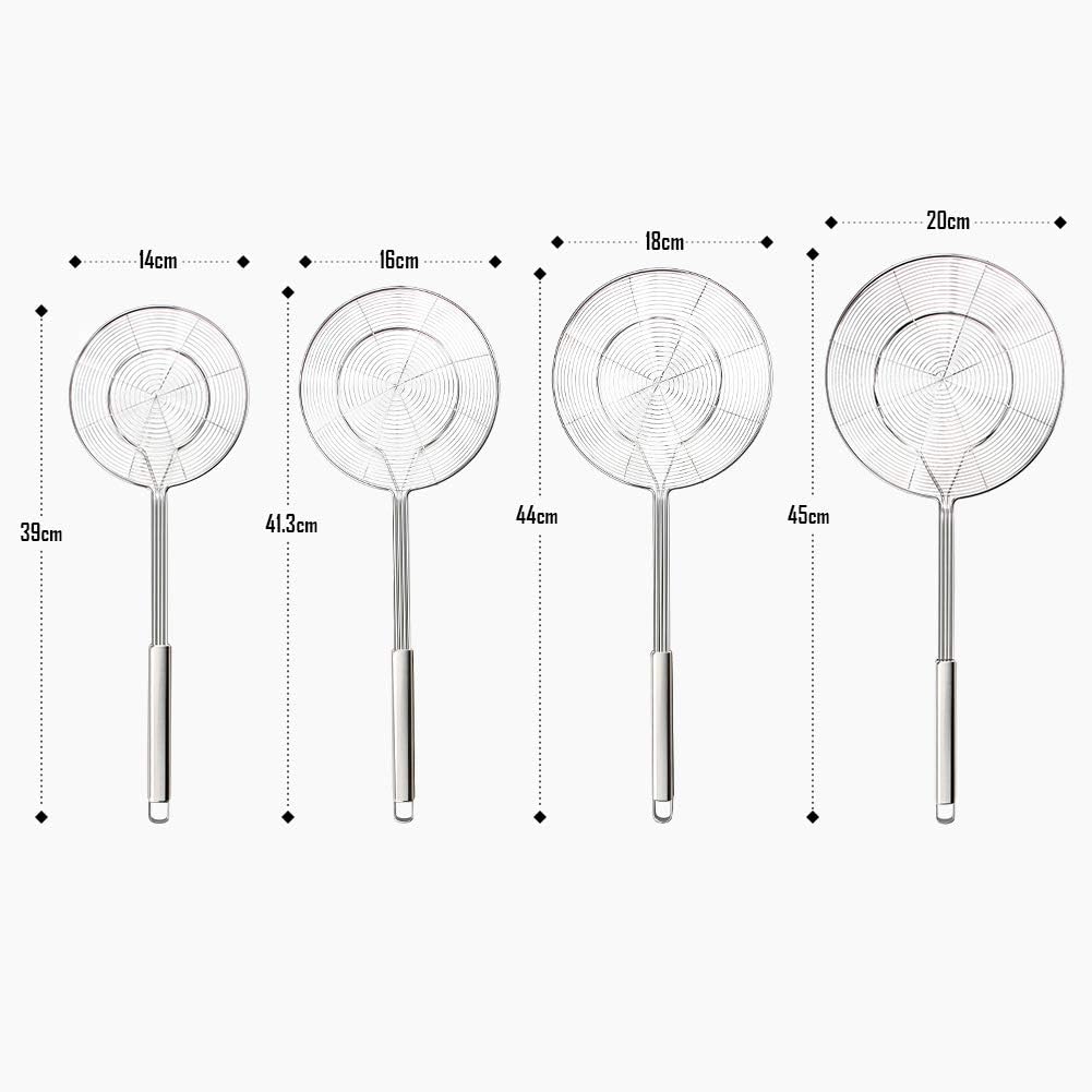Une Ă©cumoire fine en acier inoxydable, au design âaraignĂ©eâ, avec grille concave et manche extra-long : idĂ©ale pour Ă©goutter frites, lĂ©gumes, poissons et pĂątes tout en restant Ă bonne distance de la chaleur.